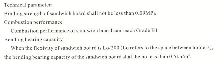 技术参数:夹芯板粘结强度应不小于0.09MPa